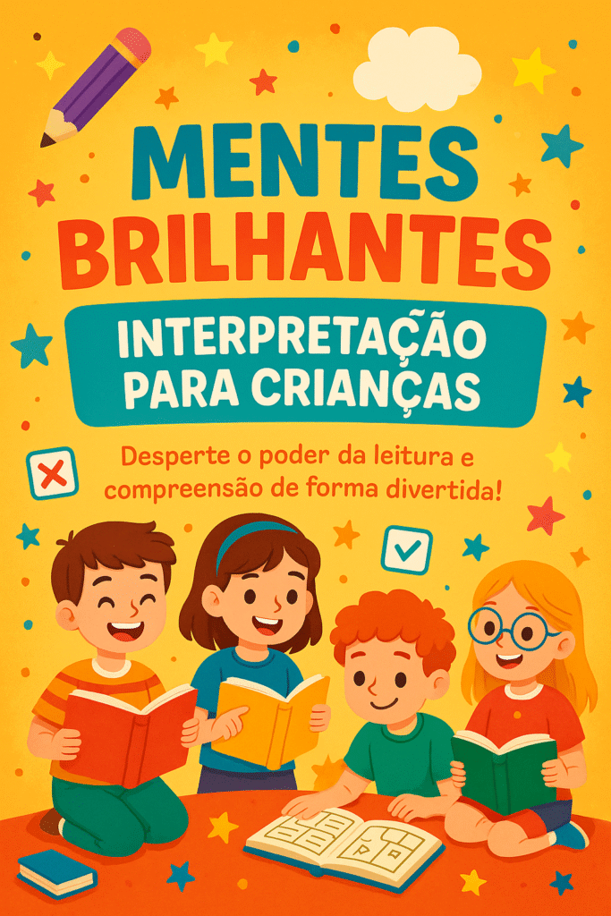 O Método MENTES BRILHANTES foi desenvolvido para crianças de 6 a 13 anos, respeitando cada fase do desenvolvimento da leitura e da compreensão textual. Por meio de atividades lúdicas, envolventes e organizadas por níveis de dificuldade, seu filho (ou aluno) aprende a interpretar com mais clareza, segurança e autonomia