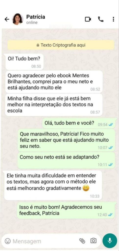 Com técnicas testadas, atividades envolventes e um passo a passo que qualquer pai ou mãe pode aplicar em casa, o Mentes Brilhantes transforma o momento do estudo em algo leve, divertido e produtivo — sem brigas, sem pressão e sem precisar ser um especialista.
